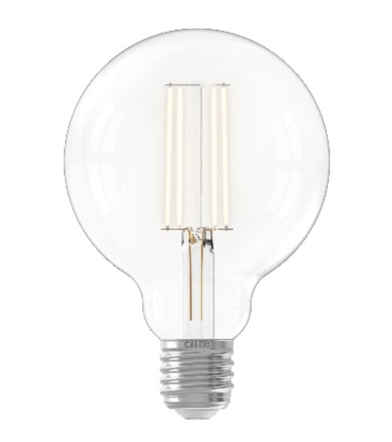 Dekoratives LED-Leuchtmittel im großen Format mit 95 mm Durchmesser, E27-Sockel, 4,5W Leistung, extra warmweißes Licht (2300K), 470 Lumen, dimmbar, lange Lebensdauer von 15.000 Stunden.