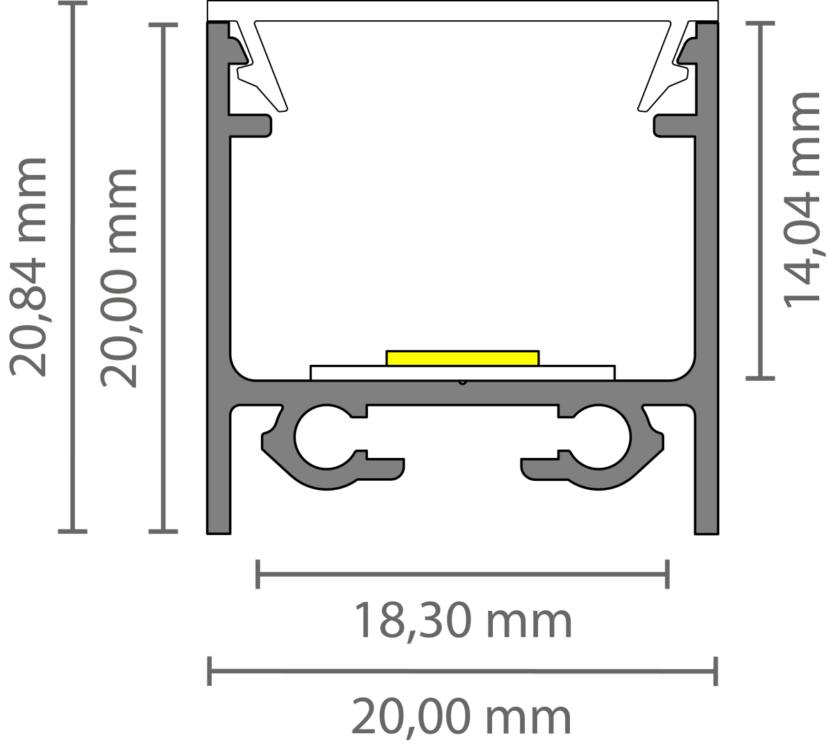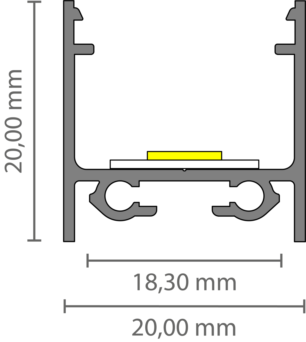 20 mm x 20 mm LED-Aluminiumprofil 3m mit Diffusorabdeckung für LED-Streifen – 318ALU, hochwertiges Montagesystem für indirekte Beleuchtung, präzise Maße nach DIN-Norm