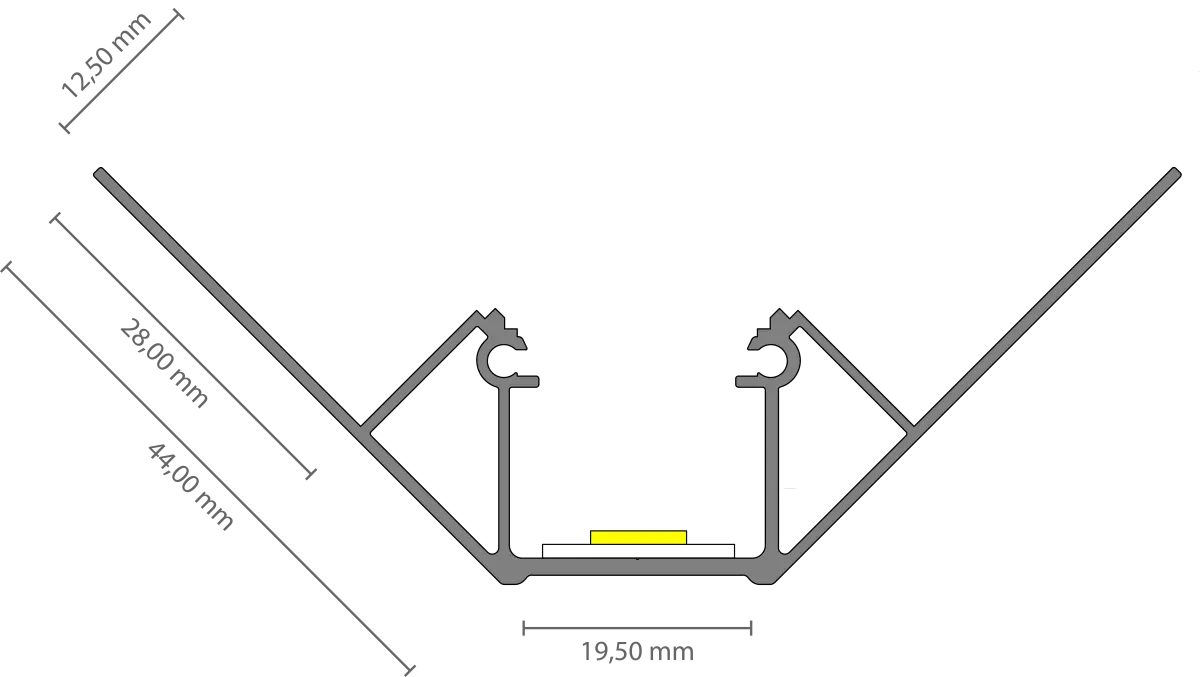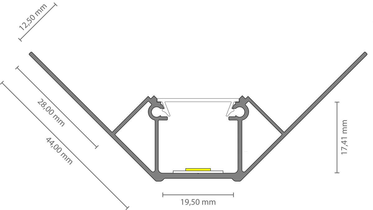 LED Trockenbauprofil Inneneck 2 Meter, 44 mm x 12,5 mm, T5– LED-Streifen-Integration für Inneneck, präzise Maße, optimale Lichtverteilung, ideal für moderne Raumgestaltung