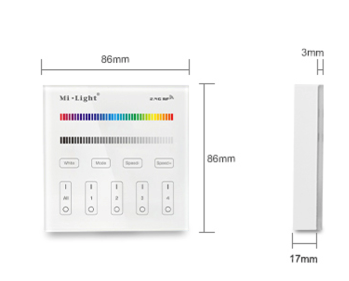 Technische Spezifikationen der 4-Zone RGB RGBW Smart Panel Remote Controller - B3 Mi-light 2.0