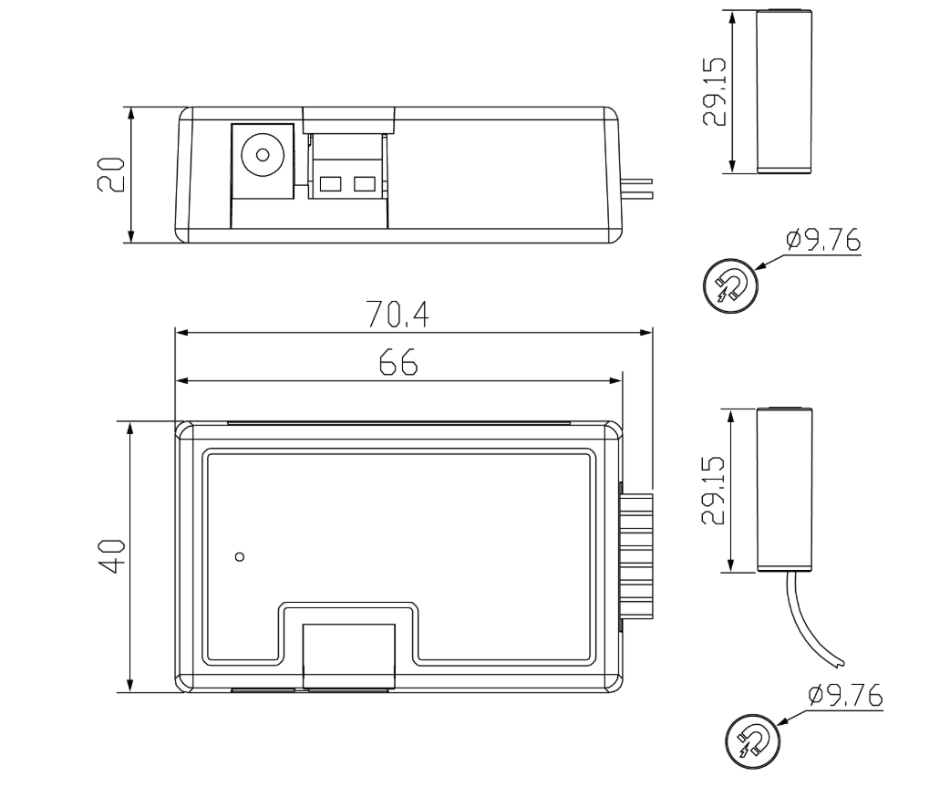 Magnetischer Schrank-Controller SMC002 für LED-Streifen mit 10×30 mm Einbausensor, kabellos, automatische Lichtsteuerung