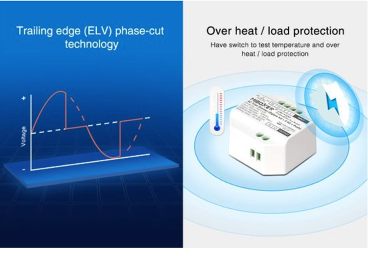 Kabeltrennbarer LED-Zigbee-Dimmer zur Stromversorgung aus dimmbaren 12-V- oder 24-V-TRIAC-LED-Netzwerken. Perfekt für den Einsatz mit LED-Beamern oder 230V-LED-Strahlern. Erhältlich mit 300 W dimmbarer 230 V-LED-Beleuchtung mit phasendimmbarem Netzwerk und Zigbee-Dimmer. Mehr über LED-Streifen